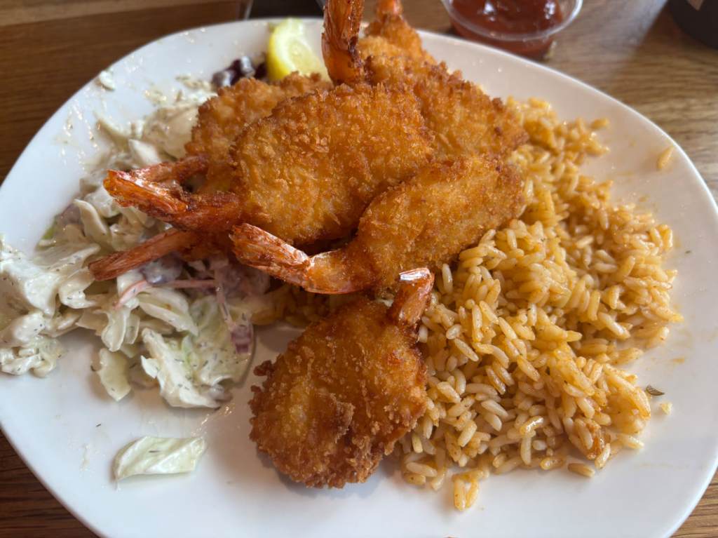 On our last trip to Maui, we ate here THREE times, it was that good. The shrimp and mahi mahi burgers are the stars of the show, and we also loved their seasoned rice as a side.