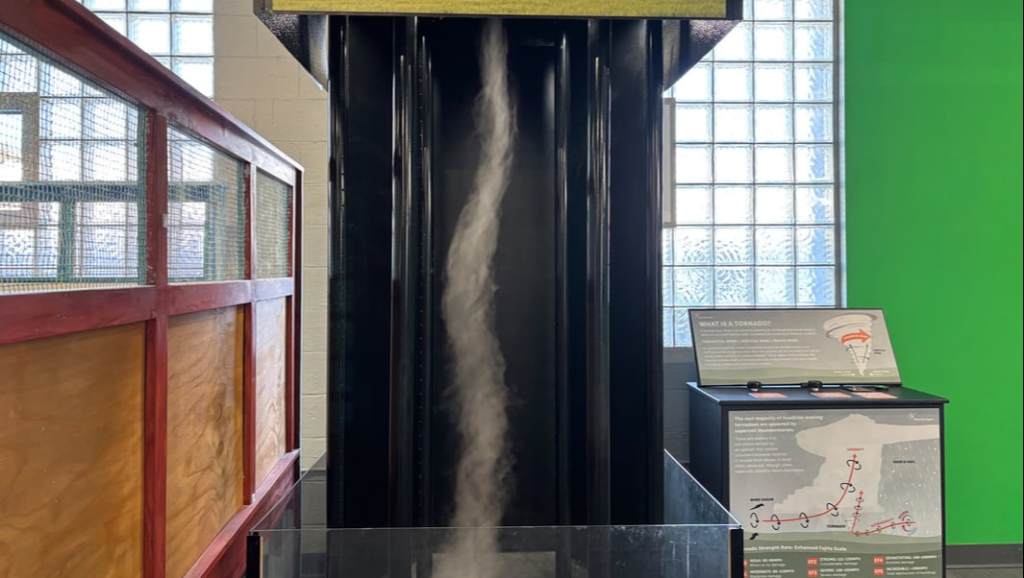 Our exhibit floor is packed with science — all within a relatively small space! From color science and medical science to the science of sound, there’s something for everyone. Of course, my favorite part is the meteorology exhibits. I especially love our tornado simulator! We also have a green screen, so when I’m feeling nostalgic I can go stand in front of it (haha).