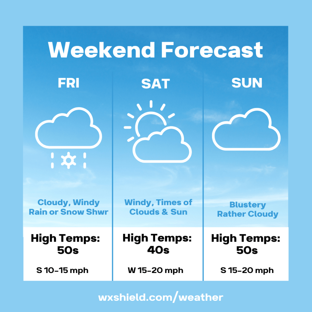 Good morning and happy Friday! We’ve got a clipper system arriving today, and then it becomes windy for the weekend.