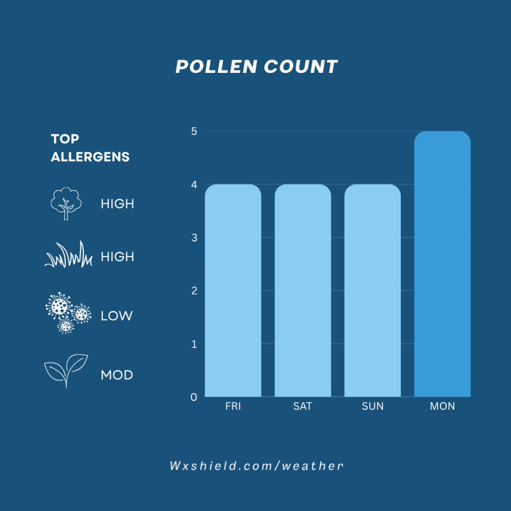 Saturday temperatures will reach the upper 50s to lower 60s. It will be cloudy with times of rain. Winds will be from the east southeast between five to ten mph. Saturday night the rain starts to taper off.